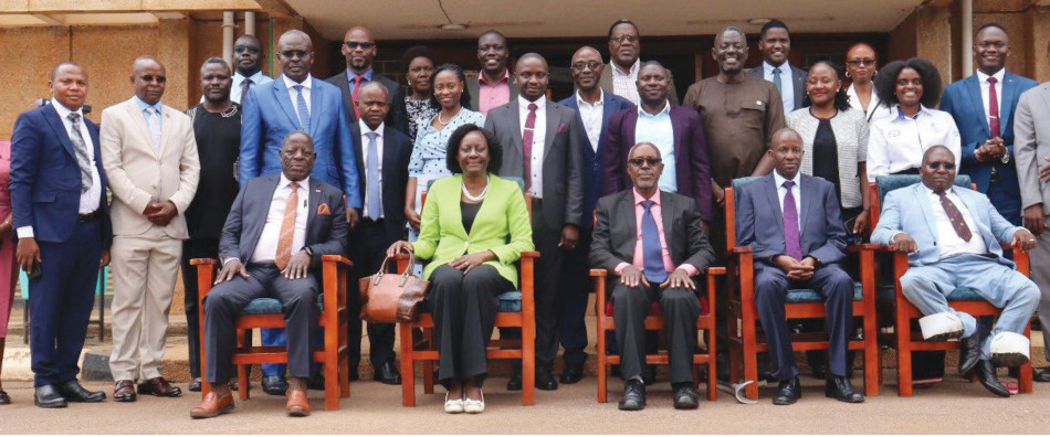 Members of the MUBS Council and Top Management in a group photo at MUBS Main Campus-Nakawa