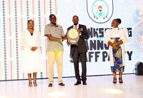Mr. Erasmas Musisi Mugerwa receiving a plaque of appreciation
