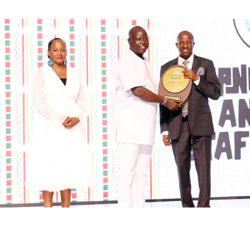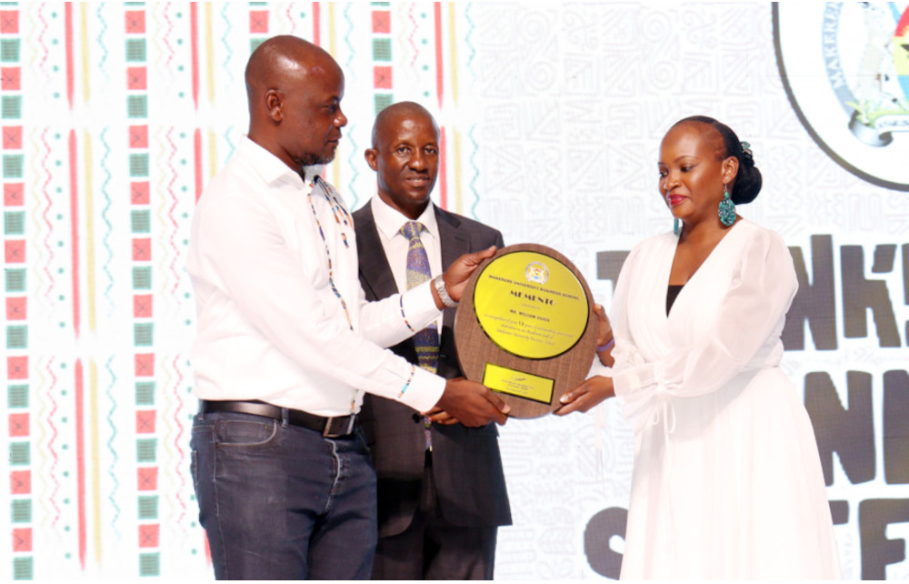 Mr. Faizal Mubuuke receiving a plaque of appreciation on behalf of Mr. William Olugu