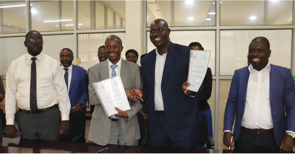 Prof. Moses Muhwezi (in a gray suit) after signing the Memorandum of Understanding (MoU) on behalf of Makerere University Business School, marking a partnership that strengthens collaboration between the two institutions