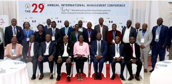 Ms. Olive Birungi Lumonya, Chairperson of the MUBS Council (in pink), and Prof. Moses Muhwezi, MUBS Principal (seated second from the right), pose in a group photo with conference delegates. September [...]